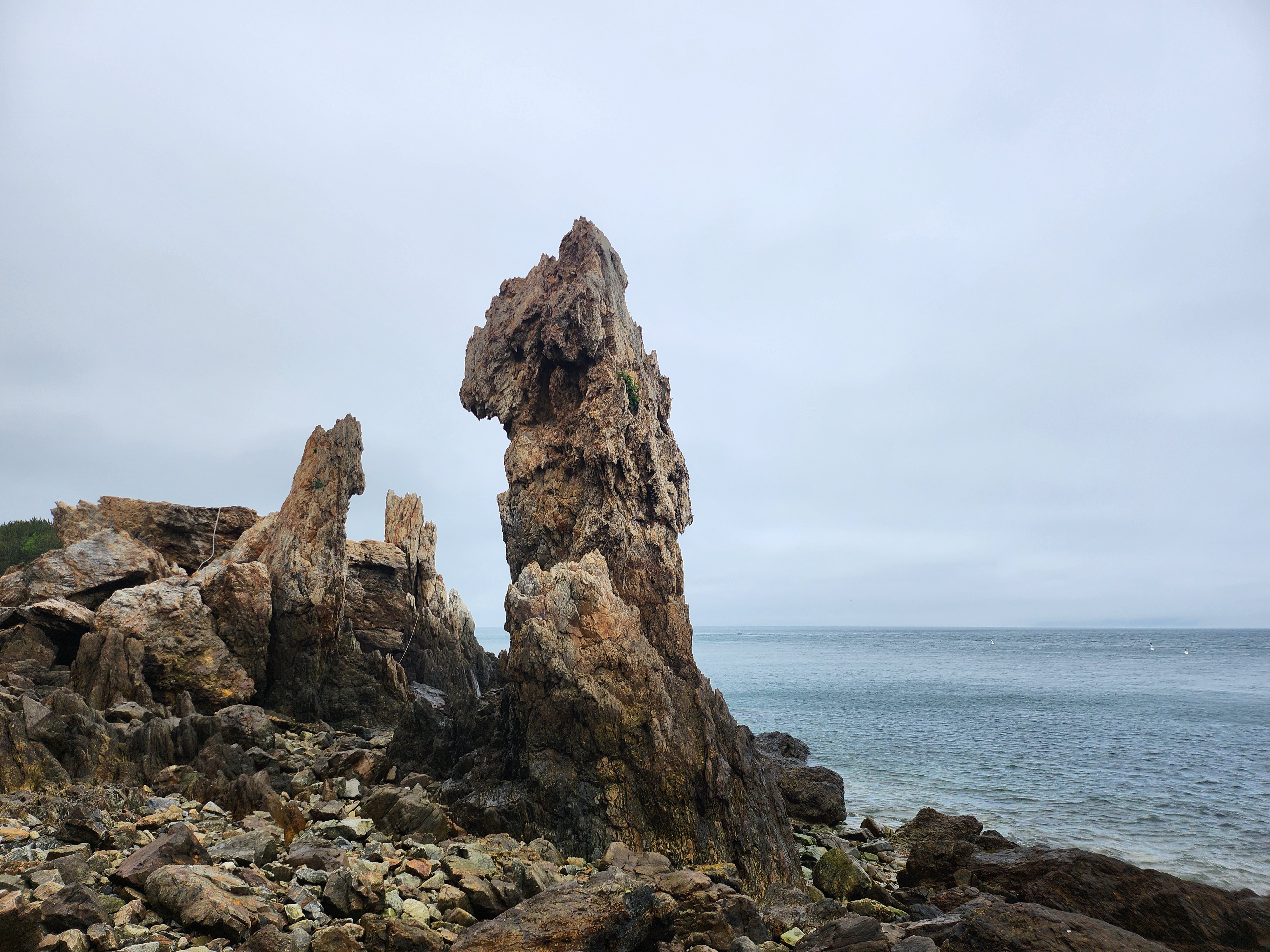 승봉도에는 다양한 형태의 기암괴석이 존재합니다. 그중에서도 남대문바위(코끼리바위)는 독특한 형상으로 유명하며, 이 바위를 통과하면 사랑이 이루어진다는 전설이 전해집니다. 또한 부채바위는 과거 유배된 선비들이 시를 쓰며 지냈던 장소로 알려져 있습니다.